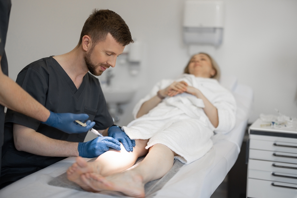 This non-invasive, outpatient procedure uses a mild chemical solution, called a sclerosant, to treat spider veins and varicose veins. In some cases, ultrasound may be used to guide the injection.